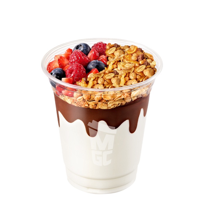 초코쉘을 입힌 요거트 젤라또에 세 가지 달콤상큼한 베리와 초코링, 고소한 그래놀라를 더한 시원달달한 요거볼이에요!